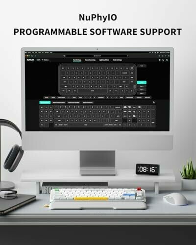 built-in knob for quick access to volume or macros; NuPhy IO web assistant for key, knob, and lighting customization and macro recording.