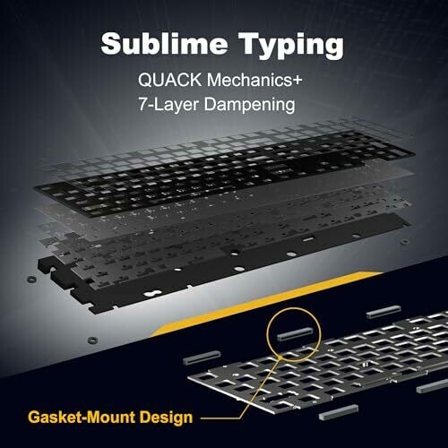 • Gasket-mount chassis delivers a refined, plush keystroke with quiet acoustics and solid stability.