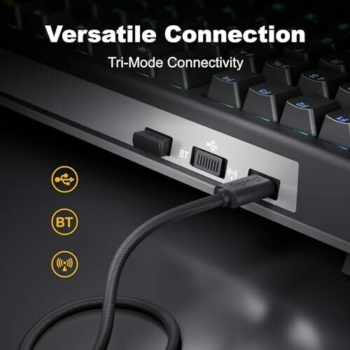 • Elevate your gaming and typing with tri-mode wireless connectivity for USB wired, 2.4 GHz RF wireless, and Bluetooth.