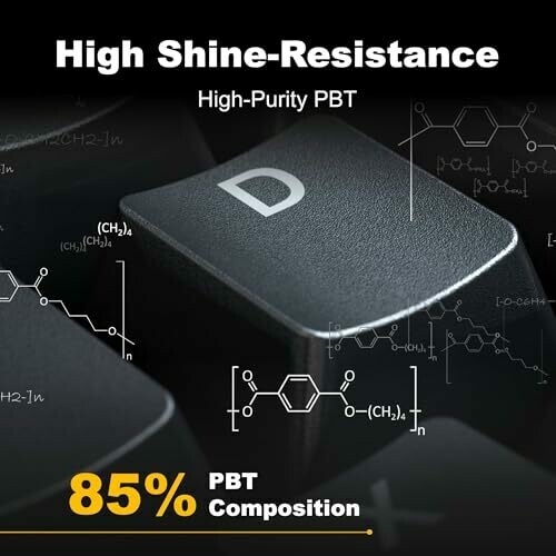 • Premium 85% high-purity PBT doubleshot keycaps resist shine and maintain crisp legends over time.