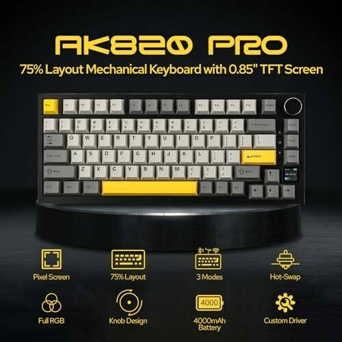 • Epomaker Ajazz AK820 PRO 75% Gasket-mounted Mechanical Keyboard with TFT Screen (Grey)