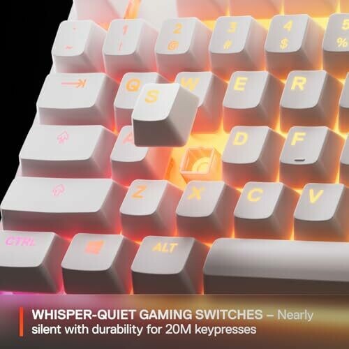 • Whisper-quiet gaming switches deliver smooth, low-friction keystrokes for over 20 million keypresses.
